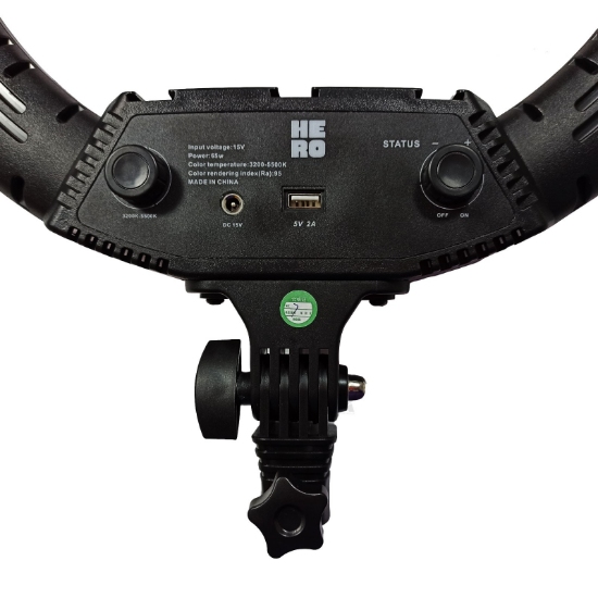 که دارای منبع نور به صورت یکنواخت است. رينگ لايت 65 هيرو با پايه دارای قطر 45 سانتی متر و توان 65 واتی میباشد.