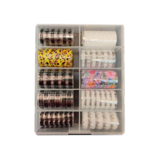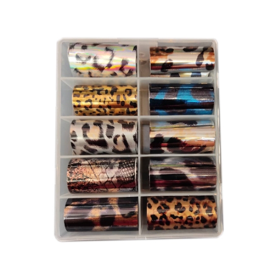 فویل ناخن یکی ابزار طراحی ناخن در سالن کاشت ناخن میباشد. این پک دارای 10 طرح متفاوت که در اندازه های 5*100 سانتی متر تولید میشود که بسیار قیمت مناسبی دارد. این پک با طرح هایی که دارد دست ناخن کار را برای نظر دادن به مشتری راحت میکند.اگر فردی به ناخن های خود زیادی اهمیت میدهد و دیزاین ناخن برای او مهم است میتواند از فویل های طرح دار استفاده کند.