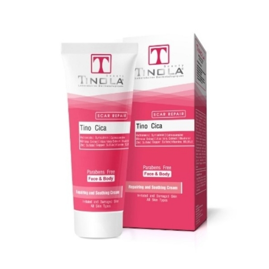 کرم ترمیم کننده پوست تینولا بیوتی مدل تینو سیکا یک کرم ترمیم کننده بسیار قوی است که با دارا بودن طیف وسیعی از ترکیبات آنتی باکتریال، تسکین دهنده (مشابه آندورفین ها)  و مرطوب کننده پوست قادر است خطر عفونت، درد، تورم خشکی و التهاب پوست بعد از وارد شدن آسیب و جراحت های پوستی را به سرعت کاهش می دهد. همچنین به واسطه حضور کمپلکسی از قویترین از ترکیبات ترمیم کننده و بازسازی کننده پوست موجب تحریک فاکتورهای رشد طبیعی پوست و بهبود روند بازسازی و ترمیم پوست های آسیب دیده می گردد. این کرم حاوی هیدرونسیس، سیمکالمین، کالموسنسین، عصاره میموزا، عصاره آلوئه ورا، بیزابولول، زینک سولفات و سولفات مس می باشد.