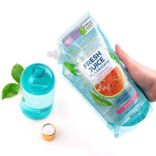 میسلار پاک کننده صورت حاوی هندوانه بی یلندا، یک میسلار واتر بوده که دارای آبِ مرکبات و میسل های پاک کننده است. این محلول برای پاک کردن روزانه پوست و مراقبت از پوست خشک مناسب است. محلول پاک کننده میسلار که دارای آب مرکبات فعال و متشکل از میوه های مدیترانه ای است، پوست صورت و آرایش چشم و لب را خیلی سریع و عالی پاک می کند. پوست را تمیز و شاداب می نماید و در عین حال که اپیدرم های کم آب را آب رسانی و نرم می کند، همچنین پوست صورت را نیز التیام می بخشد. برای استفاده از این محصول کافی است که پد پنبه ای را به محول آغشته نمایید و پوستتان را با آن پاک کنید. نیازی به استفاده محکم بر روی پوست نیست. محصولات بیلندا دارای بهترین کیفیت در محصولات پوستی صورت و بدن بوده و در تمام این سال ها سلامتی و زیبایی مصرف کنندگان خود را تضمین کرده است.
