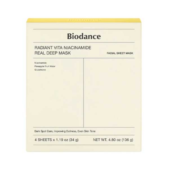 اگر به دنبال یک ماسک صورت حرفه‌ای برای روشن کردن پوست، کاهش لک‌ها، درمان جوش و جای جوش هستید، ماسک ورقه‌ای روشن کننده ویتا نیاسینامید بایودنس بهترین انتخاب برای شماست! این ماسک با ترکیبات پیشرفته و حاوی نیاسینامید (ویتامین B3)، به عمق پوست نفوذ کرده و ضمن شفاف‌سازی و یکدست‌کردن پوست، به تغذیه، ترمیم و تقویت سد دفاعی پوست کمک می‌کند.