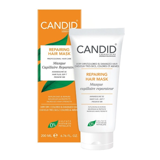 ماسک ترمیم کننده مو کاندید حجم 200 میلی لیتر به علت فرمولاسیون قوی از همان اولین تجربه مصرف، موجب آب رسانی بادوام، لطافت و نرمی قابل توجه مو می‌شود. ماسک ترمیم کننده مو کاندید علاوه بر کمک به حفظ درخشندگی و رنگ مو، ترمیم کننده و مغذی موی آسیب دیده نیز هست. ماسک ترمیم کننده مو کاندید ترمیم کننده عمقی و بازسازنده موهای شما می باشد و همچنین این ماسک مناسب مو های خیلی خشک و آسیب دیده است.