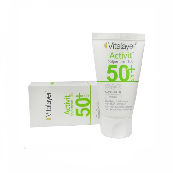 کرم ضد آفتاب ويتالير SPF50 بی رنگ دارای بافت بسیار سبک با مراقبت ومحافظت کامل وفاکتور محافظتی SPF50از پوست در برابر اشعه‌های مضر UVA و UVB و IR به جلوگیری از آفتاب سوختگی و ایجاد لک می‌پردازد. این محصول مناسب برای پوست‌های مختلط، چرب و دارای آکنه می باشد که از ایجاد جوش جلوگیری نموده و چربی پوست را کنترل می‌ نماید. این کرم با داشتن ترکیبات مغذی مانندزینک پی سی ای و نیاسینامیدکه سطح چربی پوست را کنترل می‌کنند تا از براق شدن و یا جوش زدن پوست جلوگیری کنند. و همچنین با فرمولاسیون مفیدی که دارد مانند دکسپانتنول و آلوئه ورا با رطوبت رسانی پوست از خشک شدن آن جلوگیری نموده و باعثآبرسانی و مرطوب شدن پوست صورت می‌شود. این کرم ضد آفتاب با داشتن ویتامین E که پوست را در برابر رادیکال‌های آزاد مراقبت ومحافظت می‌کند و خاصیت آنتی اکسیدانی نیز دارد.