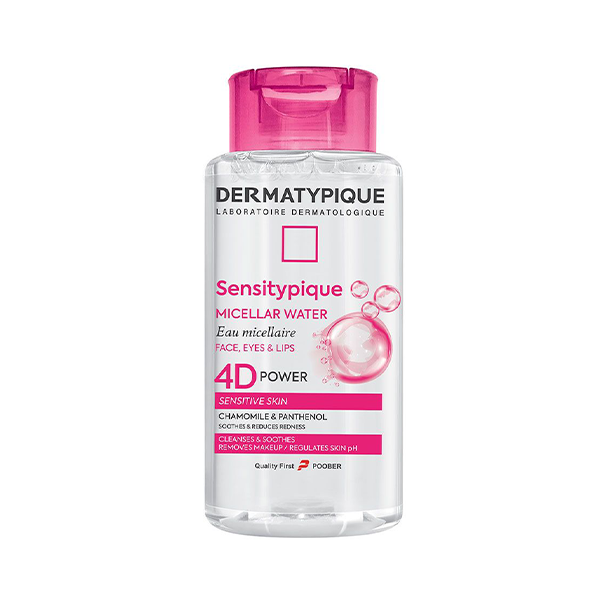 میسلار واتر پوست حساس درماتیپیک (Dermatypique Micellar Water Sensitive Skin) یک پاککنندهی ملایم، مؤثر و بدون نیاز به شستشو است که برای پوستهای حساس، خشک و مستعد قرمزی طراحی شده است. این محصول با فرمولاسیون دقیق و تستشده در آزمایشگاههای پوست، آلودگیها و آرایش (حتی آرایش چشم و لب) را بدون ایجاد سوزش یا خشکی از سطح پوست پاک میکند و حس نرمی و آرامش به آن میبخشد.