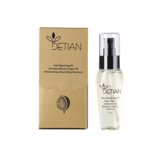 روغن مغذی و ترمیم کننده مو دتیان مخصوص موهای خشک و معمولی با مواد کاملا طبیعی و گیاهی، محصولی ویژه برای ترمیم و تقویت موهای آسیب دیده به حساب می آید و به دلیل دارا بودن سه روغن موثر و طبیعی آرگان، بادام و اسطوخودوس، تاثیرات چند گانه ای بر سلامت، تقویت، درخشندگی و لطافت موهایتان دارد. وجود این سه روغن با درصد ترکیب های خاص که حاصل مطالعات و بررسی های دقیق برترین مقالات عملی معتبر توسط متخصصین تولید کننده روغن موی دتیان می باشد، امکان تاثیرات ناخواسته استفاده از هر یک از روغن ها به تنهایی را کاهش داده و صرفا بر تاثیرات مثبت جهت ترمیم و حفظ سلامت موها تمرکز دارد. روغن آرگان طبیعی حاوی آنتی اکسیدان، اسیدهای چرب ضروری امگا 9 و 6 و ویتامین E می باشد که الاستیسیته مو را افزایش داده و رطوبت مو را تامین کرده و آن را نرم و درخشان می کند.