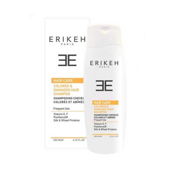 شامپو موهای رنگ شده و آسیب دیده اریکه با ترکیبات تسکین دهنده و محافظ، آسیب دیدگی موها را برطرف و از آن در برابر عوامل مخرب محیطی محافظت می کند. به دلیل دارا بودن فیلتر اشعه ماورای بنفش، رنگ مو را ثابت نگه می دارد.