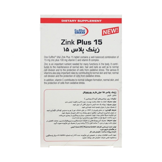 قرص زينک پلاس يوروويتال 15 ميلي گرمي