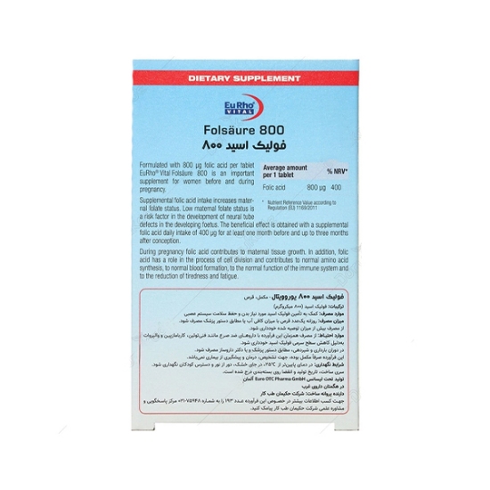 فوليک اسيد 800 ميکرو گرم يوروويتال 60 عددي
