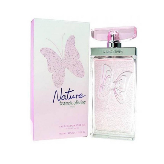 ادو پرفیوم زنانه فرانک اولیویر نیچر / Nature محصولی زیبا با بوی مرکباتی، میوه‌ای و مُشکی. رایحه نیچر با هلو و لیمو آغاز می‌شود که ترنج و لیچی این دو را همراهی می‌کنند. یاس، دارچین، گل برف وسیب نت میانی را تشکیل می‌دهند. در پایان نیز مشک، سدر و چوب صندل حضور دارند.