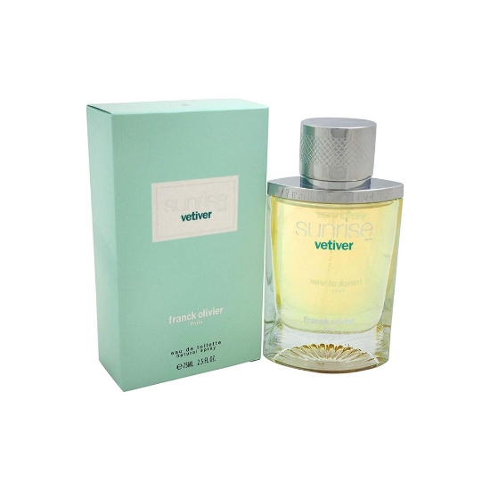عطر ادکلن فرانک الیور سان رایز وتیور-Franck Olivier Sunrise Vetiver،عطری است خنک و مردانه که شروعی شاداب، ترش و شیرین و در عین حال تلخ و گازدار از ترنج، برگهای لیمو و شکوفه های پرتقال دارد که حسی طبیعی و تا حدی صابونی مانند را القاء میکنند.با گذر زمان و با اضافه شدن کهربا شیرینی ضعیفی نیز در عطر ایجاد میگردد.