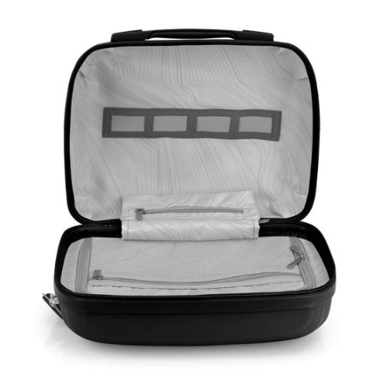 کیف لوازم آرایشی گابل مدل kiba با روکش سخت و زیپ مقاوم از مواد پلی پروپیلن انعطاف پذیر ساخته شده است. این کیف لوازم آرایشی به شما اجازه می دهد تا انواع لوازم آرایشی و بهداشتی را در آن نگهداری کنید. فضای داخلی با جیب های مشبک و زیپ دار اضافی و همچنین تسمه های لاستیکی برای بسته بندی و سازماندهی غنی شده است. داخل کیف را می توان با زیپ به دو قسمت تقسیم کرد. این کیف زیبا را می توان بر روی ترولی نصب کرد.