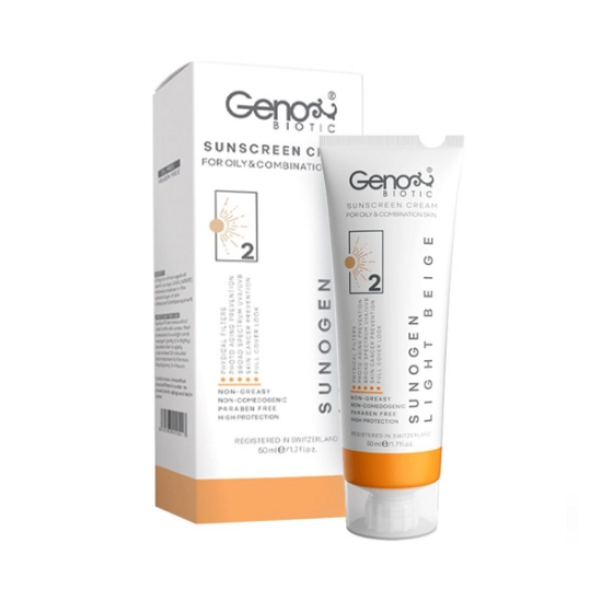 کرم ضد آفتاب رنگی ژنو بایوتیک اس پی اف 50 محصولی از برند ایرانی مناسب برای پوست چرب و مختلط است. نور آفتاب اثرات مخربی هم چون آفتاب سوختگی، سرطان، ایجاد لک، پیری زود رس و ... دارد. این کرم ضد آفتاب، با دارا بودن فیلترهای UV و همچنین مواد موثره گیاهی، نقش موثری در مهار اثرات مضر پرتوهای UVA و UVB دارد. بافت این کرم بسیار سبک است که علاوه بر ایجاد پوشش کامل بر روی پوست، فاقد چربی بوده و مانع از انسداد پوستی و تشکیل آکنه می شود.
