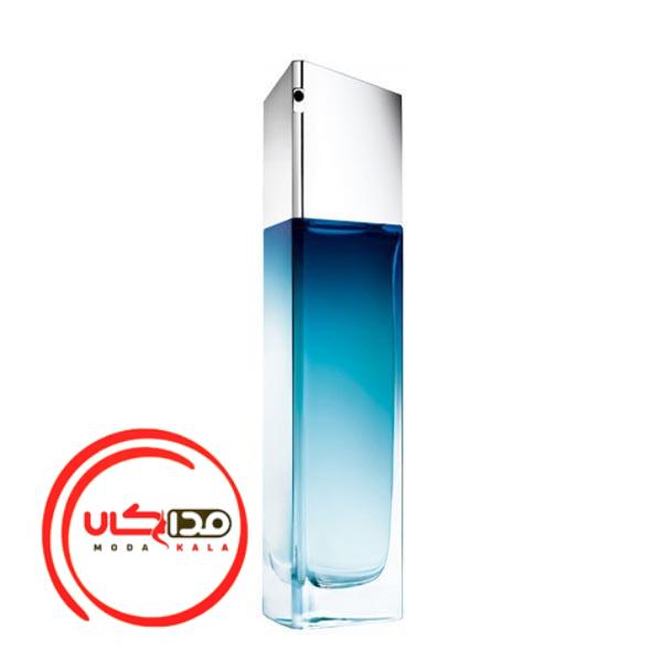 بطری این عطر بسیار زیبا و خوشدست ساخته شده است. این اثر هنری مینیمال درپوشی نقرهایرنگ روی سرش دارد. مایع درون بطری به رنگ آبی روشن است.
