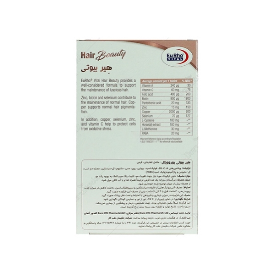 موهای زیبا نتیجه سلامتی هستند، نه تنها محصولات موضعی. قرص هیر بیوتی یوروویتال با nourish کردن بدن از درون، شرایطی را فراهم میکند که موها بتوانند قوی، پرپشت، با رنگدانهای غنی و درخشان رشد کنند. این محصول یک راهحل پایهای و fundamental برای دستیابی به موهایی است که نه تنها به نظر میرسد سالم هستند، بلکه واقعاً سالم هستند.