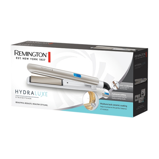 برای اینکه موهای خود را به راحتی و بدون آسیب رساندن به بافت مو، صاف کنید، باید از یک دستگاه باکیفیت و خوش‌ساخت استفاده کنید. «اتو مو هیدرا لوكس رمينگتون مدل S8901» از آن دست دستگاه‌هایی است که به شما در این موضوع کمک خواهد کرد. این دستگاه با داشتن صفحات سرامیکی که بسیار سر است موهای شما را به سرعت صاف می‌کند و با اولین استفاده شما تاثیر کیفیت این صفحات را خواهید دید. این صافی مو برای شما در طول روز ماندگار خواهد ماند. بدین صورت در تمام طول روز می‌توانید بدون نگرانی نسبت به وضع موهایتان به کارهای روزمره بپردازید. این صفحه‌ها نسبت به صفحه‌های دستگاه‌های مشابه در بازار، تا 5 برابر موهای شما را صاف‌تر می‌کند و با هر بار عبور موها از بین صفحات، موها 50 درصد صاف‌تر می‌شوند.  در صورت نیاز می‌توانید دما را از 150 تا 230 درجه سانتیگراد به دلخواه تغییر دهید. اتو مو هیدرا لوكس رمينگتون مدل S8901 در کمتر از 30 ثانیه گرم می‌شود و همچنین مجهز به صفحه نمایش دیجیتال به رنگ آبی است که میزان دما را هنگام روشن بودن دستگاه نشان می‌دهد که با دکمه های + و - می‌توانید دما را کم یا زیاد کنید. برای روشن شدن دستگاه یک بار کلید on را فشار دهید و برای خاموش شدن آن نیاز است که چند ثانیه کلید off را بفشارید. سیم بلند چرخان این دستگاه سبب می‌شود که به‌راحتی در منزل و یا سالن های آرایشی از آن استفاده نمائید. این دستگاه حرفه‌ای با کاربردهای فراوان برای هر نوع مویی قابل استفاده خواهد بود.