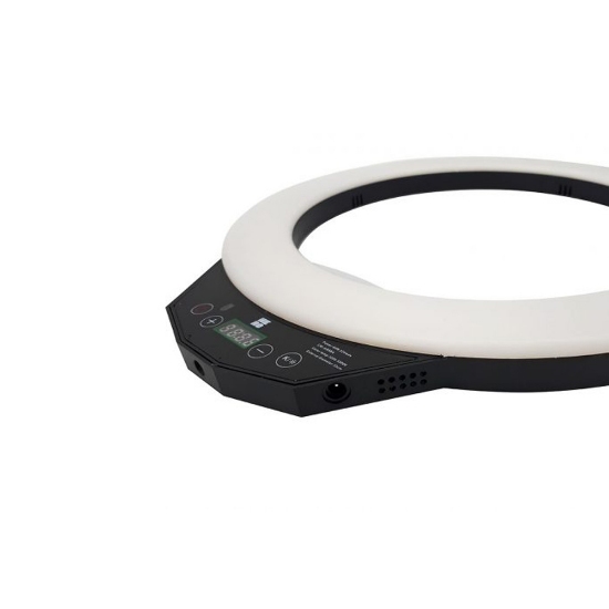 بر روی این رینگ لایت صفحه نمایشگری جهت نمایش تنظیمات نوری قرار دارد.دکمه تنظیمات کلوین و قدرت خروجی نور به صورت لمسی است.