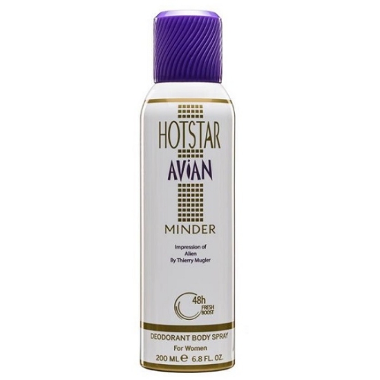 اسپری زنانه هات استار مدل الین موگلر (Avian Minder) فراتر از یک اسپری عمل می کند با بیش از 48 ساعت ماندگاری است . اسپری هات استار Avian Minder رایحه ای شبیه عطر Thierry Mugler – Alien تیری موگلر آلین ادو پرفیوم (تری ماگلر الین پارفوم) دارد. اسپری بدن با استفاده از مواد فعال، غدد عرق را مسدود میکند و مانع از بیرون آمدن عرق میشود. در تمام انواع اسپری بدن، ماده فعال ذکر شد نوعی از ترکیبات آلومینیوم است. طی ده های اخیر، تصور میشد که آلومینیوم با افزایش احتمال وقوع بیماری آلزایمر و سرطان سینه در ارتباط است. اما مطالعات اخیر نشان دادند که هیچ شواهدی مبنی بر ارتباط بین آلومینیوم و افزایش احتمال وقوع این بیماریها وجود ندارد. وقتی صحبت از انتخاب اسپری بدن ارزان و خرید اسپری بدن میشود، باید احتیاط کنید که کدام نوع آن را انتخاب میکنید.