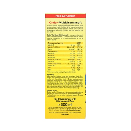 شربت مولتی ویتامین کیندر یوروویتال: عصاره کامل رشد و شادابی برای فرزند شما