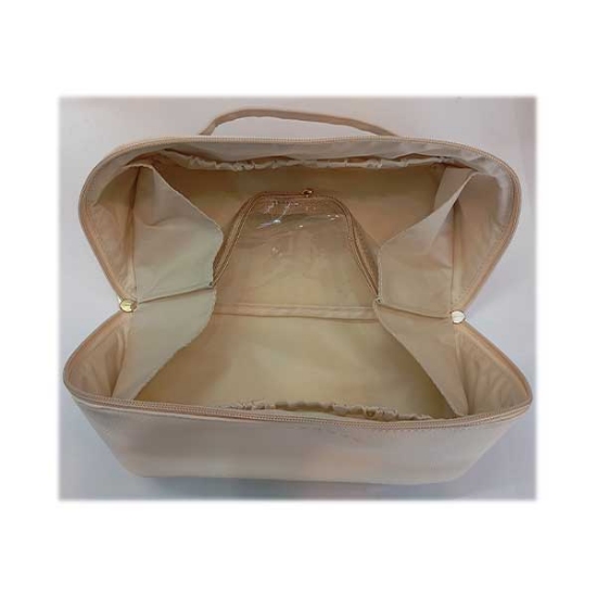 این کیف آرایشی به گونه‌ای طراحی شده است که فضای کافی برای نگهداری تمامی لوازم آرایش شما را دارد. از رژ لب و پنکیک گرفته تا برس و لوازم جانبی دیگر، همه چیز در این کیف جا می‌شود. با این کیف، دیگر نیازی به نگرانی درباره گم شدن یا نامرتبی لوازم آرایش خود نخواهید داشت. طراحی چند طبقه این کیف به شما این امکان را می‌دهد که به راحتی لوازم خود را دسته‌بندی کرده و در دسترس داشته باشید.