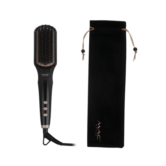 برس حرارتی مو مک استایلر مدل MC-19وسیله‌ای شبیه برس معمولی است؛ اما دارای دندانه‌هایی است که داغ می‌شوند و موها را صاف می‌کنند.