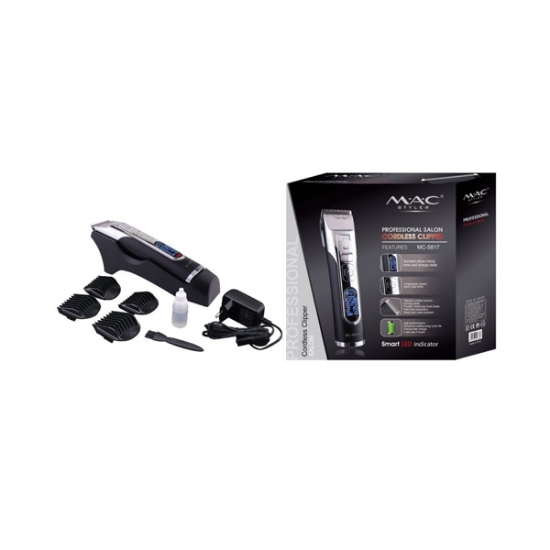 ماشین اصلاح مک استایلر MC-5817 ، با طراحی ارگونومیک، هنگام استفاده به دست شما فشاری وارد نمیکند و دارای سیستم برش مستقیم می باشد. اولین چیزی که با در دست داشتن مک استایلر توجه را جلب می کند، طراحی ساده و خوش دست آن است. این ماشین بسیار بی صدا و بدون لرزش است و جنس تیغه های آن لیتیوم است. در کنار این ها این ماشین اصلاح دارای یک نمایشگر LED نیز می باشد. این ماشین ضد آب نیست و قابل استفاده برای زیر دوش نمی باشد. اقلام همراه این محصول عبارتند از: 4 شانه، بههمراه آن روغن و برس تمیزکننده.