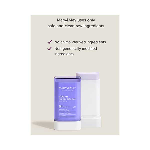 ضدآفتاب استیکی Mary & May با ترکیبات گیاهی و فناوری پیشرفته، نهتنها از پوست در برابر آفتاب محافظت میکند، بلکه بهعنوان یک مراقبت ضدپیری عمل مینماید. پپتایدها و باکوچیول (رتینول گیاهی) موجود در این محصول، به کاهش خطوط ریز و چینوچروک کمک کرده و پوستی صاف و جوان را برای شما بهارمغان میآورند.