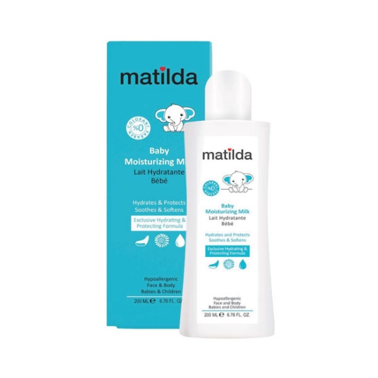 شیر مرطوب کننده پوست کودک ماتیلدا از سری محصولات مراقبتی کودک ماتیلدا است که یک محصول مرطوب کننده و نرم کننده پوست کودک است. شیر مرطوب کننده کودک ماتیلدا با ترکیبات سازگار خود مناسب برای مرطوب نگه داشتن پوست صورت، بدن و به خصوص پوست ناحیه پوشک کودکان است.