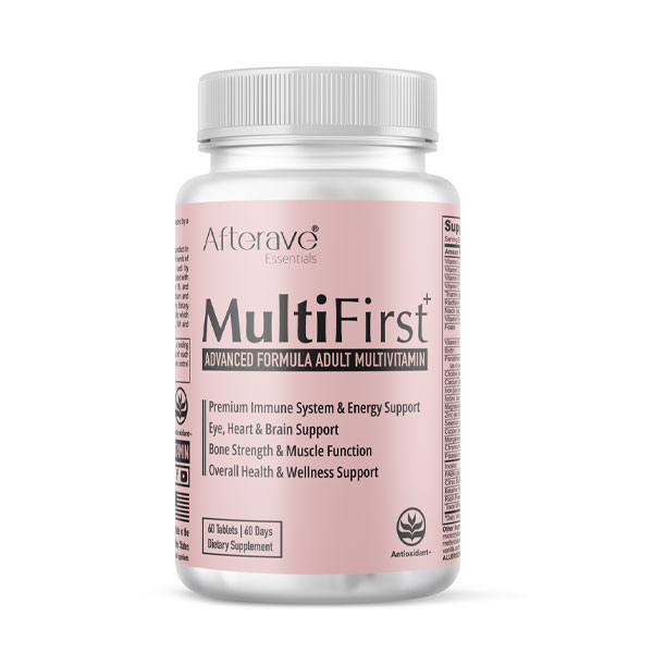 مکمل مولتی فرست افترایو، یک مولتی ویتامین جامع و تخصصی برای بزرگسالان است که با هدف تقویت سیستم ایمنی، افزایش سطح انرژی و بهبود عملکرد کلی بدن فرموله شده است. این مکمل با ترکیبی از ویتامینها، مواد معدنی، عصارههای گیاهی و میوه، از سلامت قلب، مغز، چشم و گوش حمایت کرده و به دلیل دارا بودن پروبیوتیکها، به بهبود عملکرد سیستم گوارشی نیز کمک میکند. مولتی فرست افترایو با کنترل قند خون و افزایش متابولیسم، در مدیریت وزن سالم نیز نقش دارد و فاقد پارابن، مواد مصنوعی و GMO است.