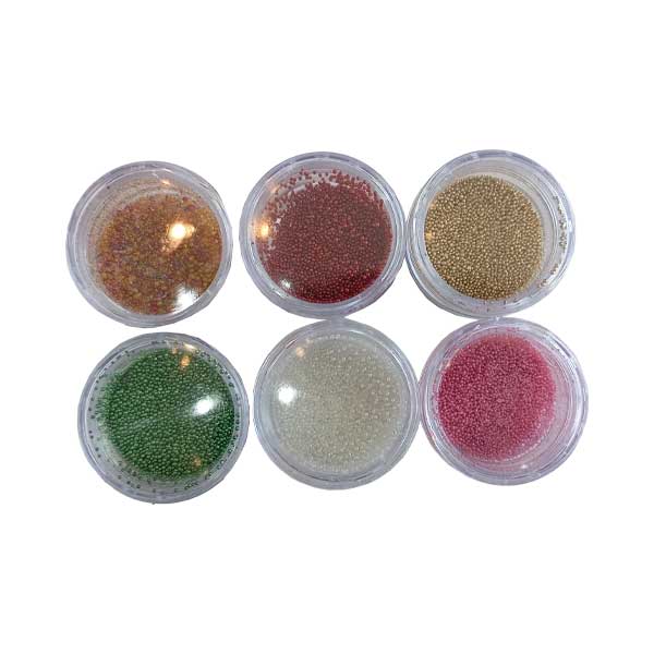 دانههای خاویار رنگی: این دیزاین شامل دانههای کوچک و رنگی است که میتوانند به سادگی بر روی ناخنهای شما قرار گیرند. هر بسته شامل 6 رنگ مختلف است که به شما این امکان را میدهد تا با خلاقیت خود، طرحهای متنوعی ایجاد کنید.
