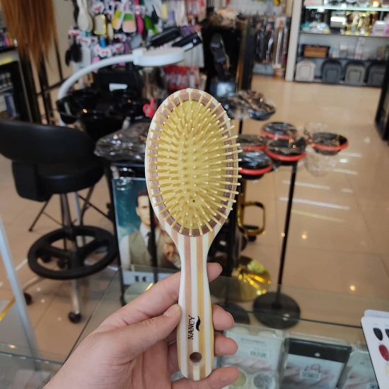 برس طرح چوب نانسی، یک برس مناسب و کاربردی برای شانه کردن و خشک کردن موهای بلند است. این برس در دسته برسهای کوسندار قرار میگیرد، چون مجهز به بالشتک نرم است که داخل آن پینهای پلاستیکی قرار گرفتهاند. داشتن بالشتک یا کوسن یک ویژگی خوب برای برس محسوب میشود و جلوی فشار به موها و پوست سر را میگیرد، در نتیجه هیچ آسیبی به آنها در زمان شانه کردن نمی زند.