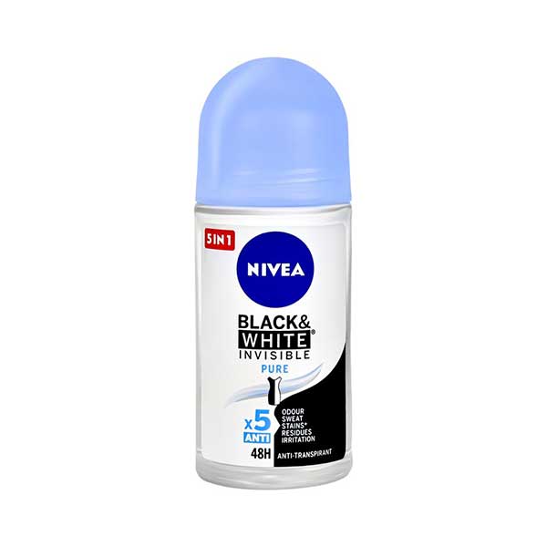مام رول ضد تعريق زنانه نيوا مدل بلک اند وايت اينويزيبل پيورNivea Black & White Invisible Pure حجم 50 ميلي ليتر