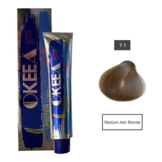 رنگ مو زنانه اکیا با فرمولاسیون انحصاری و غلظت بالا ۱۰۰ میل رنگ مو برابر با ۱۵۰ میل رنگ مو می باشد، دارای پروتئین هیدرولیز شده گندم، ویتامین c، درصد بسیار پایین آمونیاک، دارای پوشش یک دست موهای خاکستری و سفید، دارای ثبات و درخشندگی بالا.