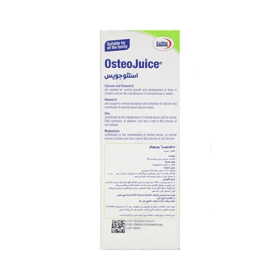 این محصول با افتخار تحت لیسانس شرکت Euro OTC Pharma GmbH آلمان و با رعایت استانداردهای دقیق کنترل کیفیت تولید شده است. نماینده انحصاری این برند معتبر در ایران، شرکت حکیمان طب میباشد که اصالت و دسترسی آسان به محصول را تضمین مینماید. هر بطری حاوی 200 میلیلیتر از این شربت مغذی است. سلامت استخوانها یک ماراتن است، نه یک دو سرعت. با انتخاب شربت استئوجویس یوروویتال، شما نه تنها برای امروز، بلکه برای فردای تمام اعضای خانواده خود سرمایهگذاری میکنید و بنای سلامت را بر پایههایی استوار bina میکنید.