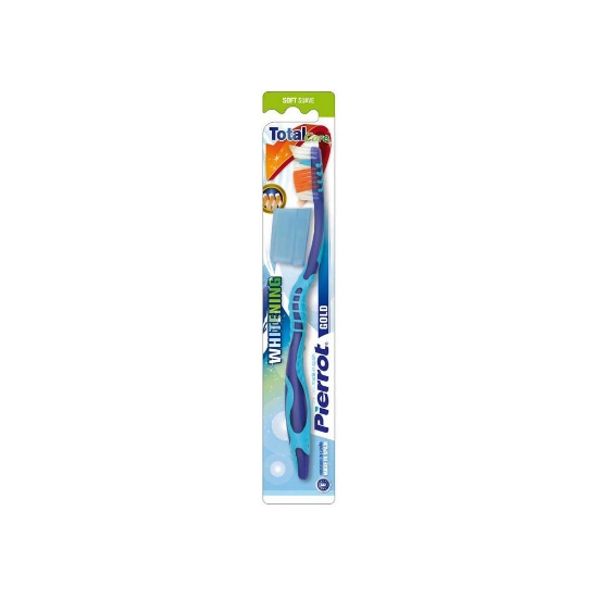 مسواک مدل Gold پیرروت محصول کشور اسپانیاست که ویژگی اصلی آن سفیدکنندگی منحصر بفرد دندان توسط نوارهای لاستیکی است که مینای دندان را پولیش داده و لکه های روی دندان را برطرف می کند، برس مسواک تمام ته گرد است و از آسیب رساندن به لثه ها جلوگیری می کند، این مسواک دارای تمیز کننده زبان و درپوش است و دسته ارگونومیک آن مانع لغزش مسواک می شود.
