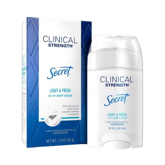استیک ضد تعریق کلینیکال لایت اند فرش سکرت، از نوع استیک بوده که دارای ماندگاری 48ساعته می باشد این ضد تعریق حس رطوبت یا نم در زیر بغل ایجاد نمی کند. و در طول روز حس طراوت و تازگی را در شما ایجاد میکند. همچنین این محصول بلافاصله پس از استفاده خشک می گردد. همچنین رد و خطوط سفیدی از خود به جای نمی گذارد و از ایجاد بوی نامطبوع در حین عرق کردن جلوگیری می کند. این محصول مناسب برای خانم ها می باشد.