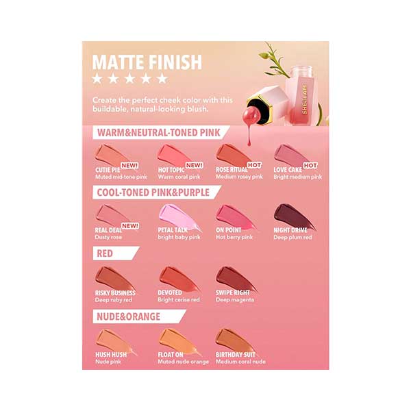 رژگونه مایع Sheglam با رنگ Real Deal، یک محصول چندمنظوره با فرمول سبک و پایدار است که برای ایجاد گونههای طبیعی و خوشرنگ طراحی شده است. این محصول با حجم 5 میلیلیتر، گزینهای ایدهآل برای افرادی است که به دنبال یک رژگونه با پوشش عالی، ماندگاری طولانی و جلوهای مات و زیبا هستند.