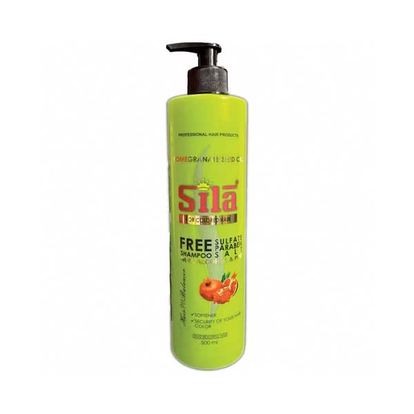 شامپو موهای رنگ شده سیلا حاوی روغن هسته انار حجم 500 میلی لیتر