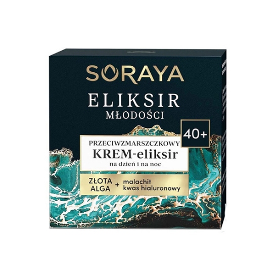 کرم روز و شب ضد چروک الکسیر جوانی ثریا مخصوص سنین بالای 40 سال محصولی از برند لهستانی ثریا است. این محصول فرمولاسیون تصفیه شده حاوی جلبک طلایی، مالاکیت و هیالورونیک اسید دارد. این کرم که برای روز و شب طراحی شده است، استحکام پوست را افزایش می دهد و موجب کاهش چین وچروک ها پوست می شود. هیالورونیک اسید موجود در این کرم پوست را آبرسانی کرده و از خشکی و کشیدگی پوست جلوگیری می کند. این کرم روز و شب به واسطه ترکیبات موثر خاصیت ارتجاعی پوست را بهبود می بخشد. طبق نظرسنجی بعد از 4 هفته استفاده از این کرم نتیجه آن را خواهید.
