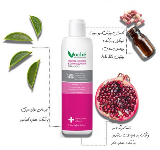 شامپو کراتینه وچه دارای فرمولاسیون اختصاصی جهت حفظ رنگ و کاهش اثرات مخرب دکلره و رنگ مو است. کراتین موجود در این محصول سبب آبرسانی عمیق و موثر مو میشود. این شامپو حاوی بیوتین، ویتامینهای A،E و B5 است که سبب کاهش ریزش مو و تقویت فولیکول آن شده و از طریق فیلتر UV و عصاره انار به تثبیت رنگ مو با کاهش اثرات نور خورشید بر روی موهای رنگ شده میپردازد. این محصول فاقد مواد مضر سولفات، نمک، پارابن، سیلیکون، گلوتن، پروپیلن گلیکول و دایمتیکون است. شامپوهای فاقد سولفات شویندگی بهتر و کف کمتری دارند.