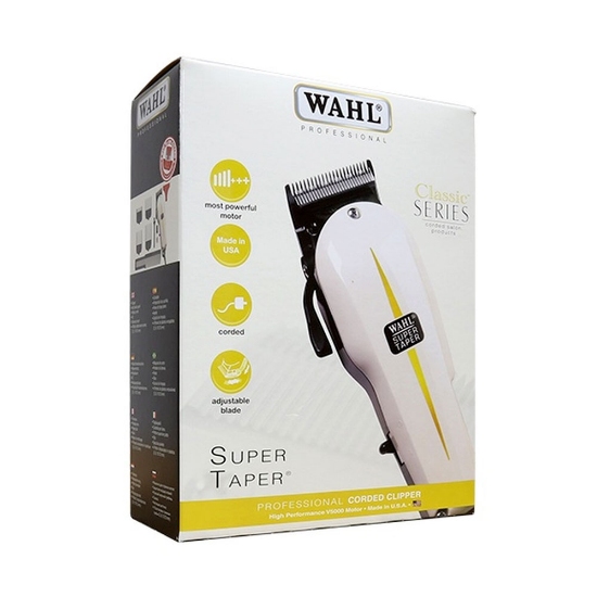 ماشین اصلاح سر و صورت وال مدل سوپر تیپر با قدرت و مستقیم برق شهری کار و قدرت موتور V5000 می تواند موهای ضخیم را کامل اصلاح کند، جنس تیغه های این ماشین اصلاح از استیل ضد زنگ کروم با عرض 40 میلی متر با اندازه اصلاح 1 تا 3.5 میلی متر می باشد درجه بندی را می توان با اهرم تنظیم کننده ماشین اصلاح تنظیم نمود. این ماشین اصلاح در دو طرف تیغه ها دو پیچ چهار سو نیز دارد که با آن می توان اندازه تیغه ها را نیز تنظیم نمود.