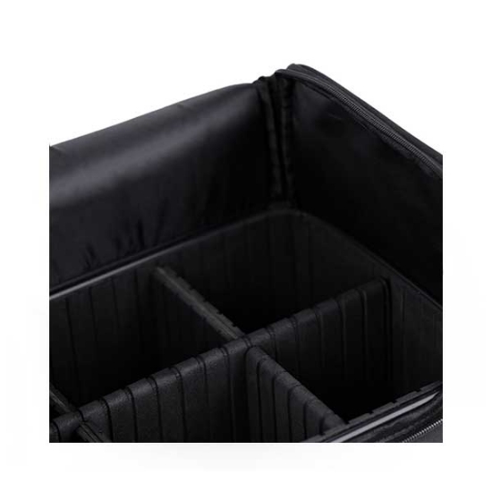 این کیف با دیوایدرهای قابل تنظیم به شما امکان می‌دهد فضای داخلی را بر اساس نیاز خود شخصی‌سازی کنید. هر بخش برای قرارگیری ابزارهای مختلف مانند کارد مژه، موچین، چسب مژه، سرم‌ها و قلم‌های آرایشی طراحی شده است.